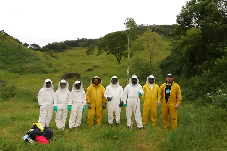 Oferecemos a custo zero capacitação, insumos, equipamentos de segurança e suporte contínuo, para as famílias parceiras do projeto através da apicultura sustentável, geração de renda, consciência social e ecológica.